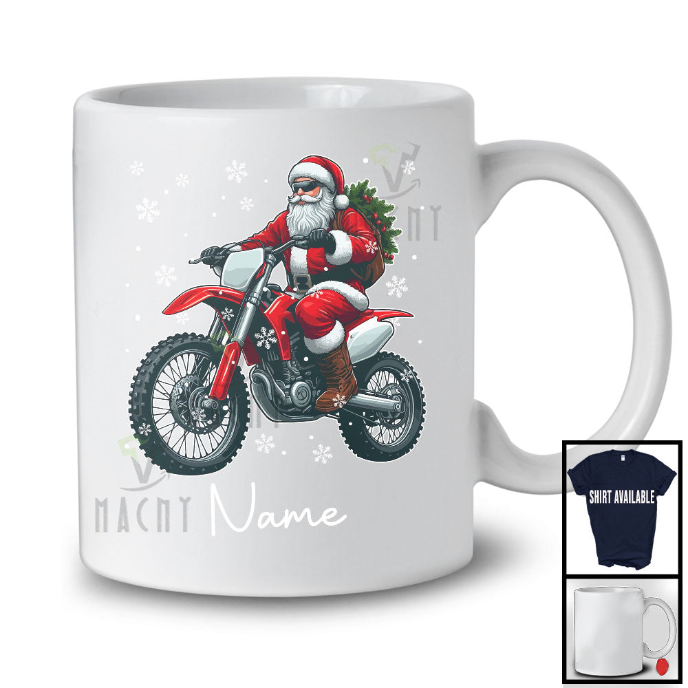 Personalized Custom Name Santa Riding Dirt Bike, Cheerful Christmas Rider Biker, X-mas Team T-Shirt