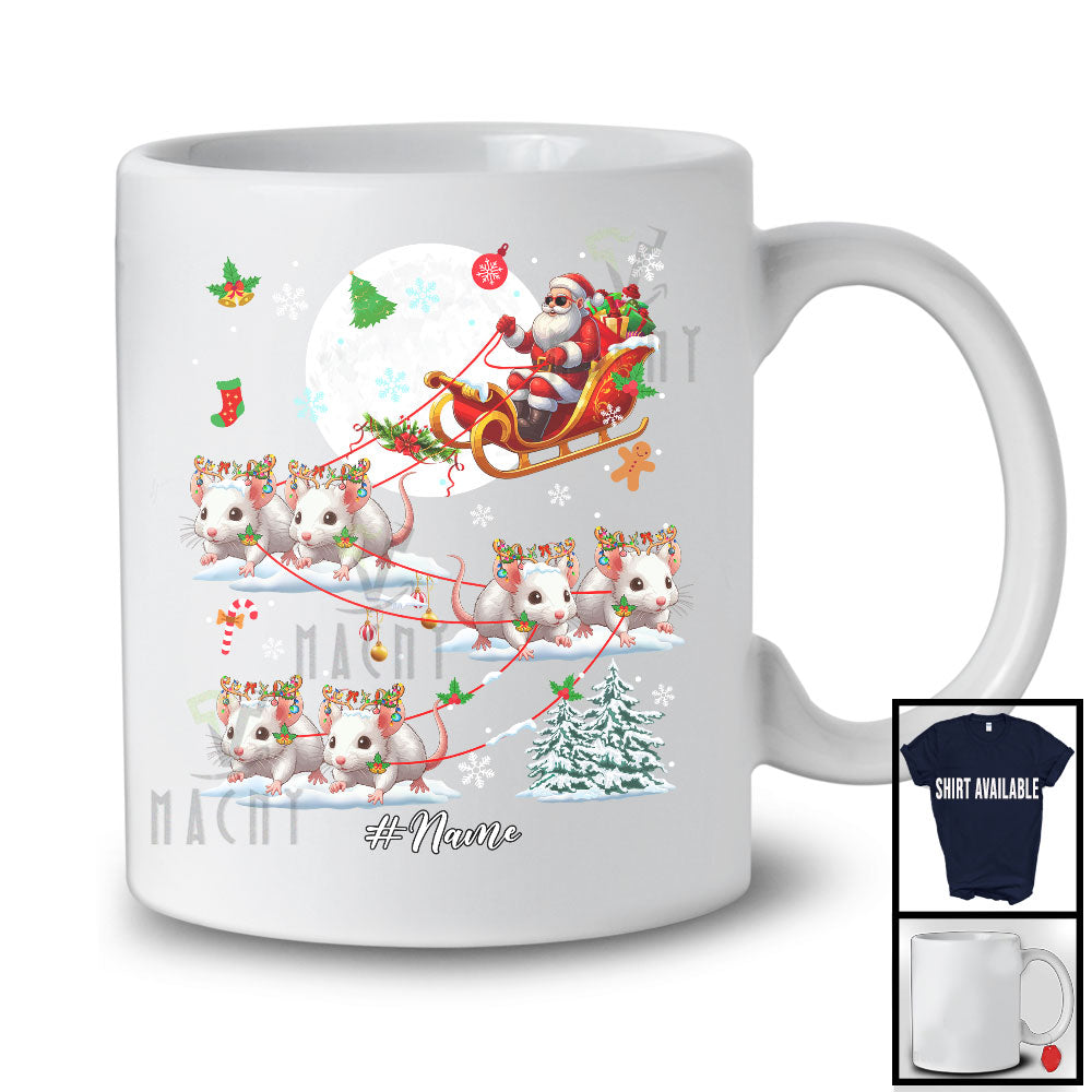 Personalized Custom Name Santa Riding Reindeer Rat Sleigh; Merry Christmas Moon; Snow T-Shirt