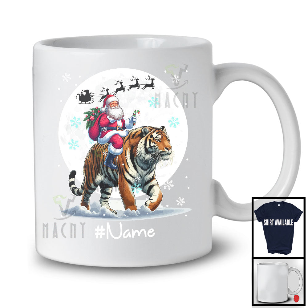 new MacnyStore - Personalized Custom Name Santa Riding Tiger, Merry Christmas Moon Snow Tiger, X-mas Team T-Shirt – Macnystore