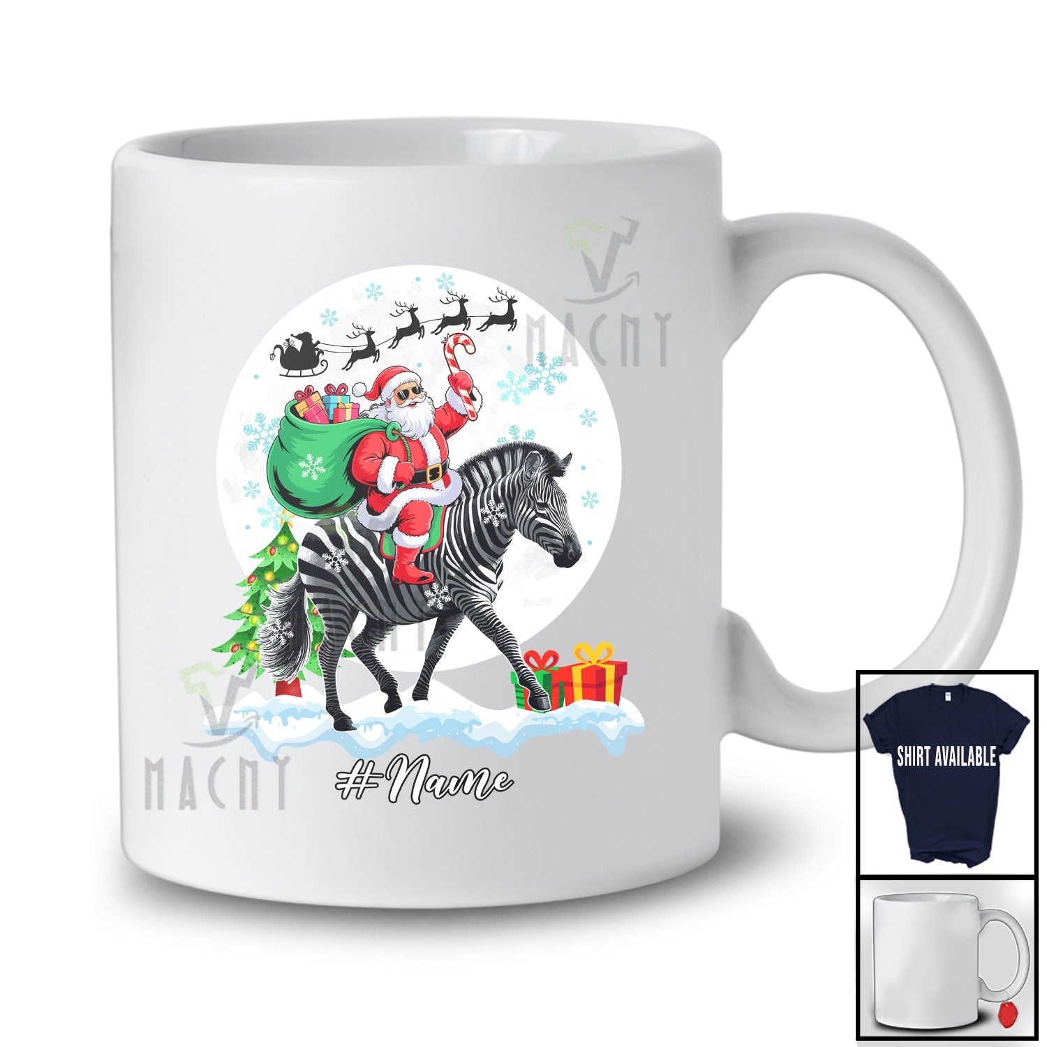 Personalized Custom Name Santa Riding Zebra; Lovely Christmas Moon Wild Animal; Family T-Shirt