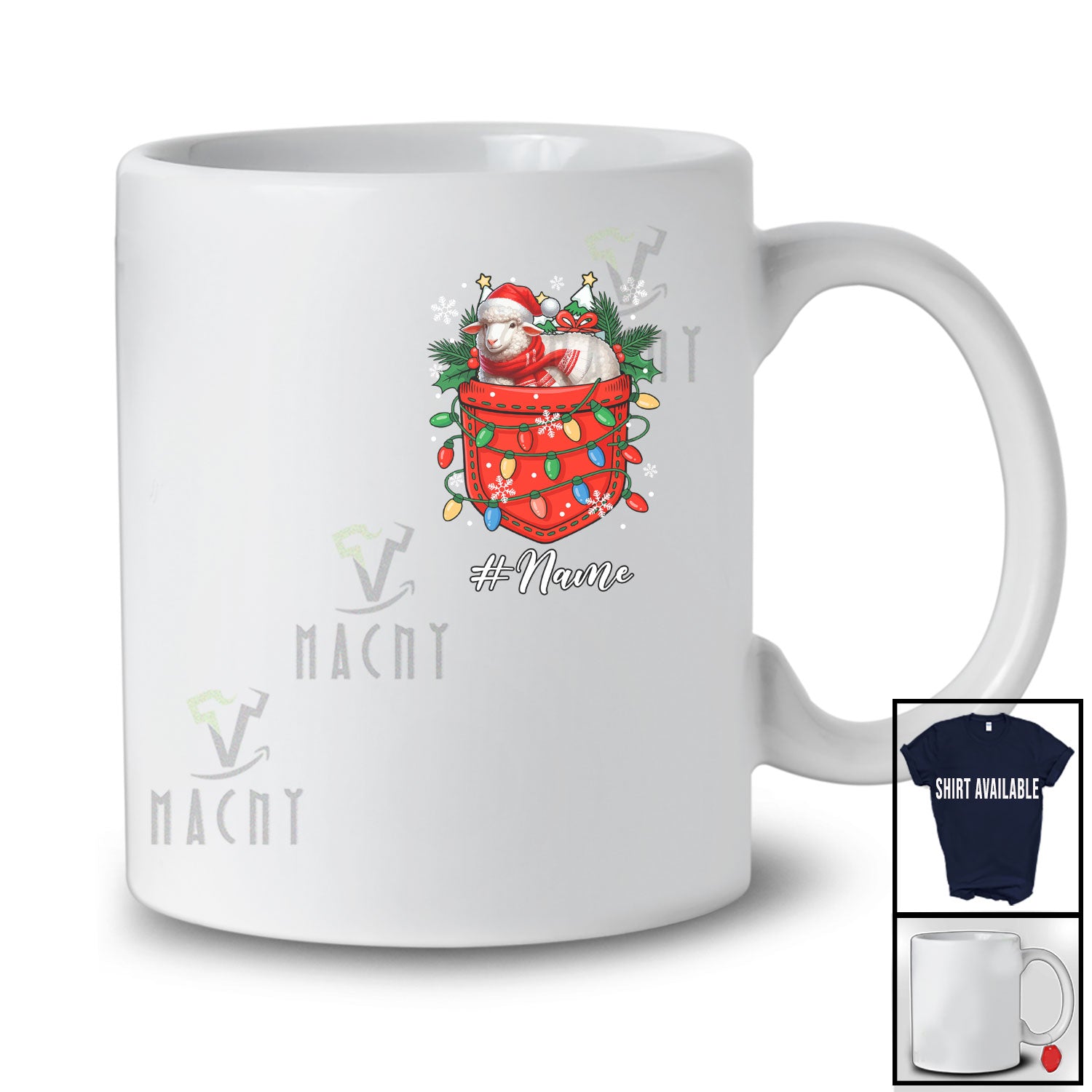The Personalized Custom Name Santa Sheep In Pocket; Adorable Christmas Lights Farm Farmer T-Shirt destined to impress, and priced at only $12.95, for a limited time.