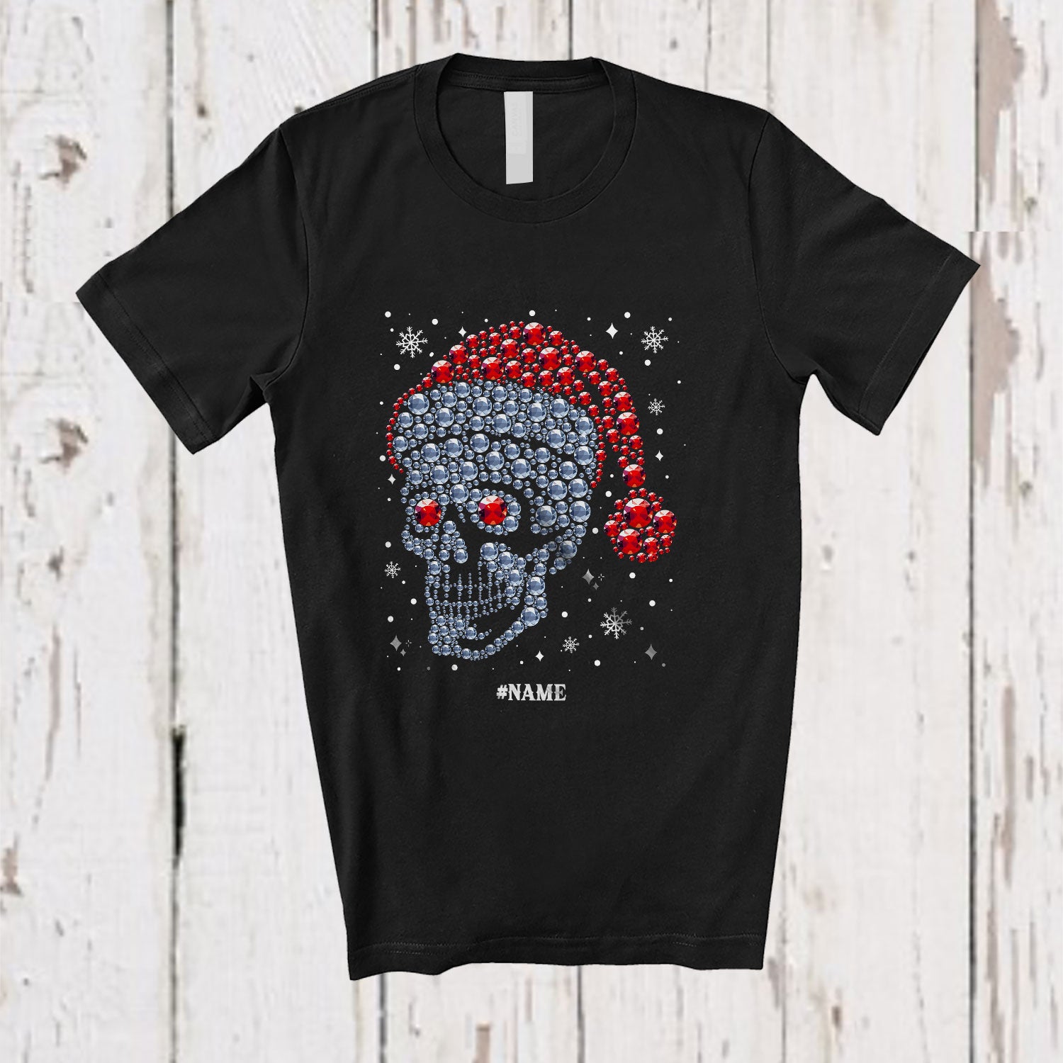 Personalized Custom Name Santa Skull Snow Around; Amazing Christmas Pajamas Family Group T-Shirt