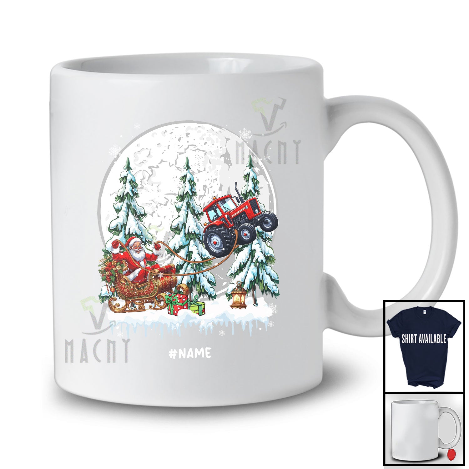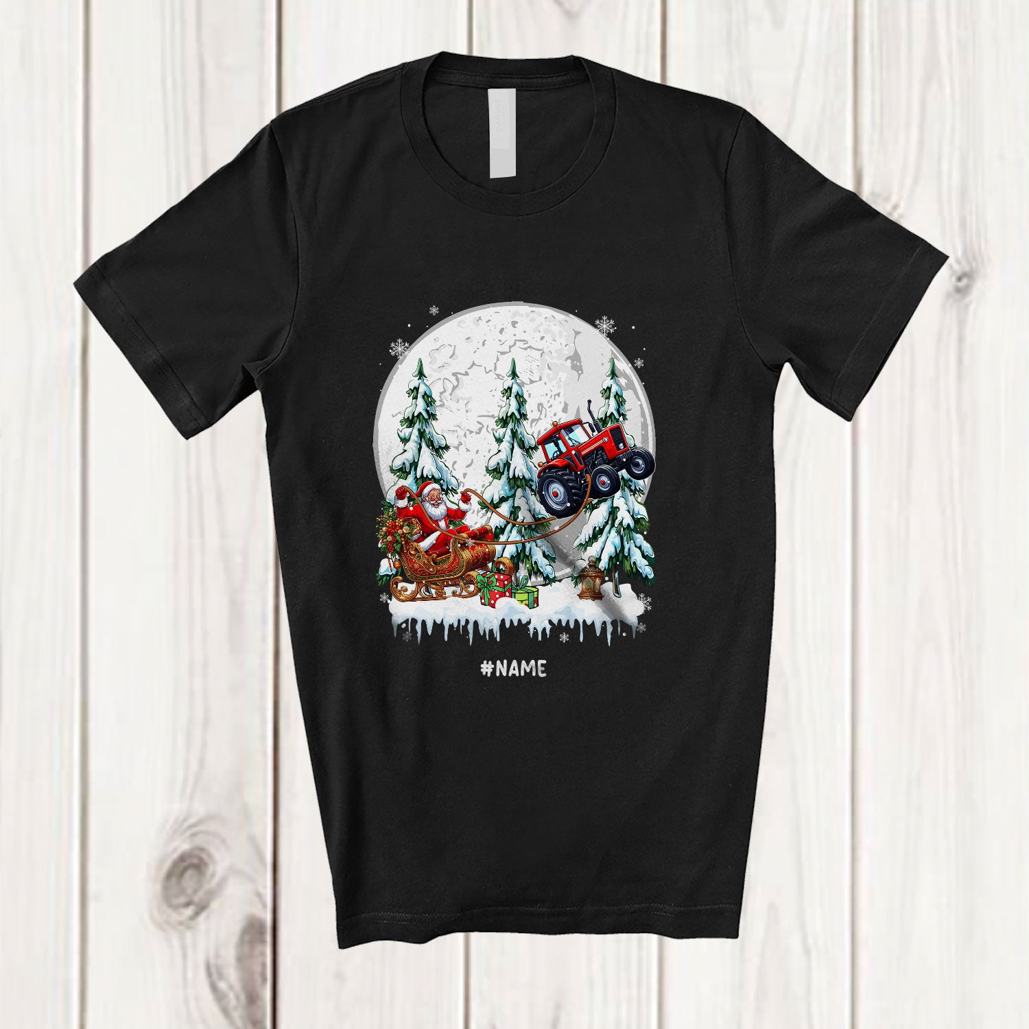 The Personalized Custom Name Santa Sledding Tractor Sleigh; Joyful Christmas Tree Moon Driver T-Shirt destined to impress, and priced at only $12.95, for a limited time.