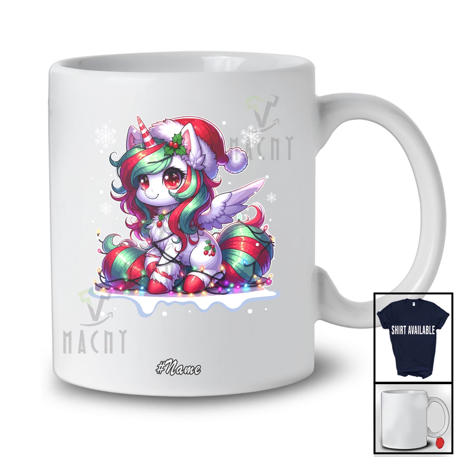 Personalized Custom Name Santa Unicorn; Adorable Christmas Lights Magical Unicorn Lover T-Shirt