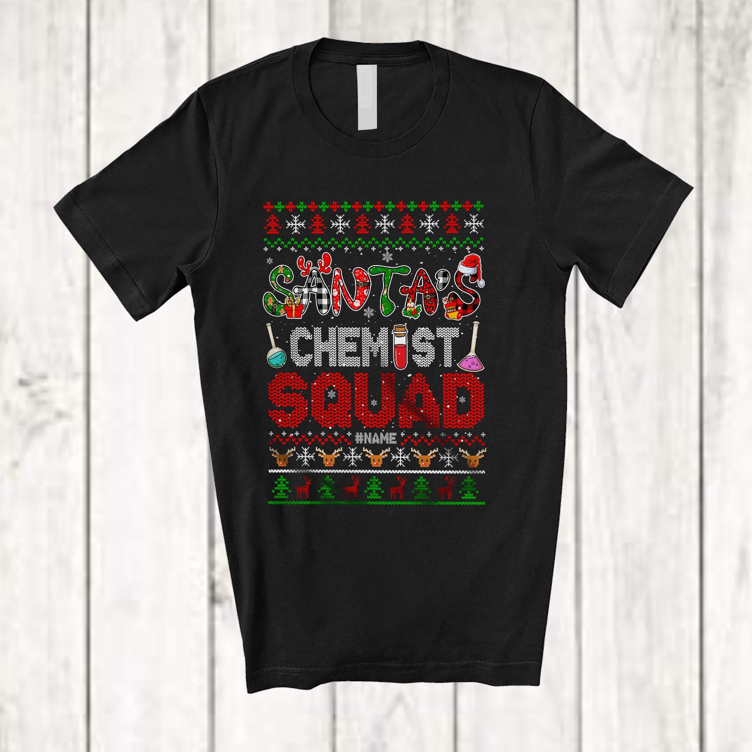 Personalized Custom Name Santa's Chemist Squad; Fantastic Christmas Sweater; Careers Jobs T-Shirt. This cotton t-shirt is a durable staple product with a classic fit. One of the most popular items, it has a relaxed style made for everyday and casual wear.