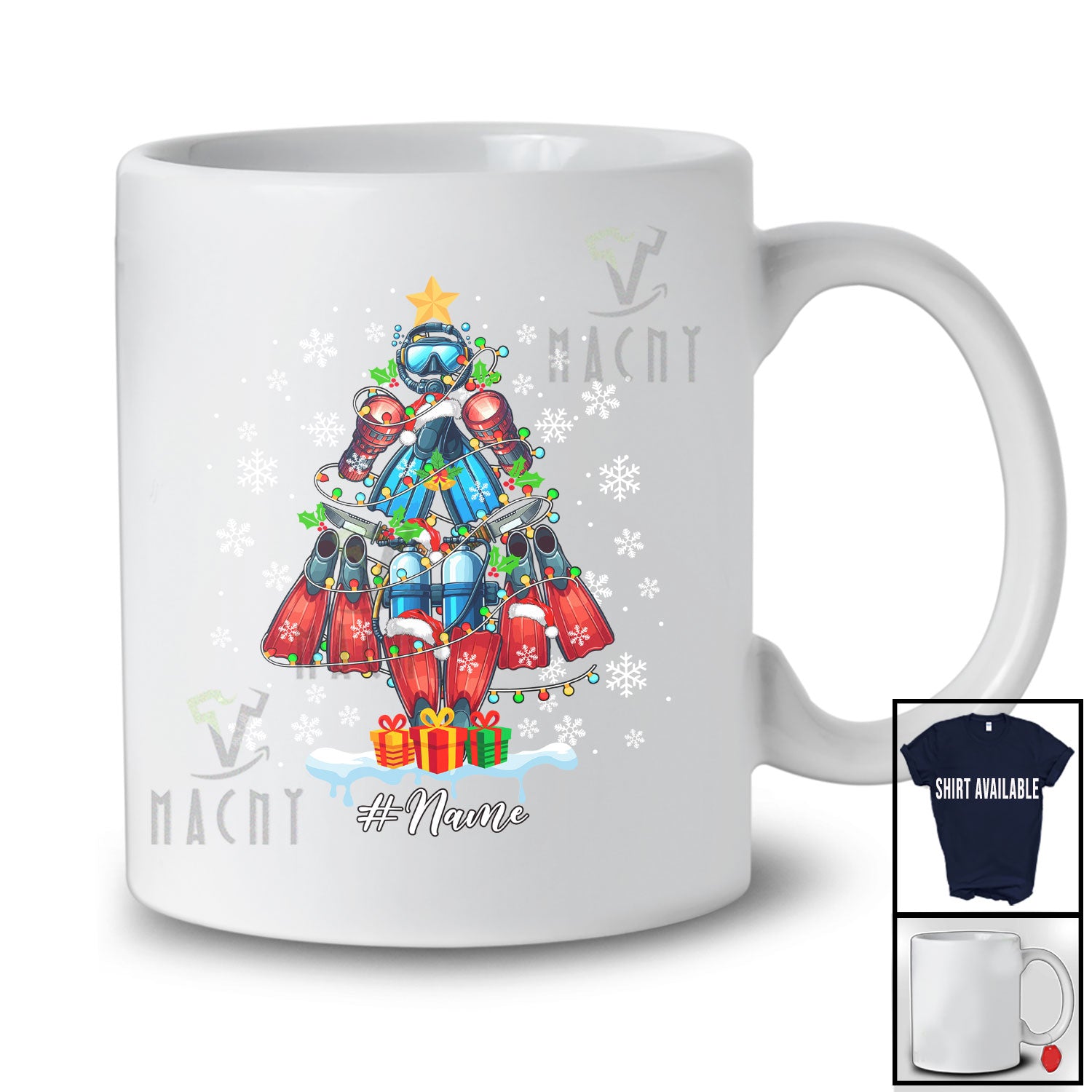 new MacnyStore - Personalized Custom Name Scuba Diving Tools Christmas Tree; Amusing X-mas Lights Family T-Shirt – Macnystore