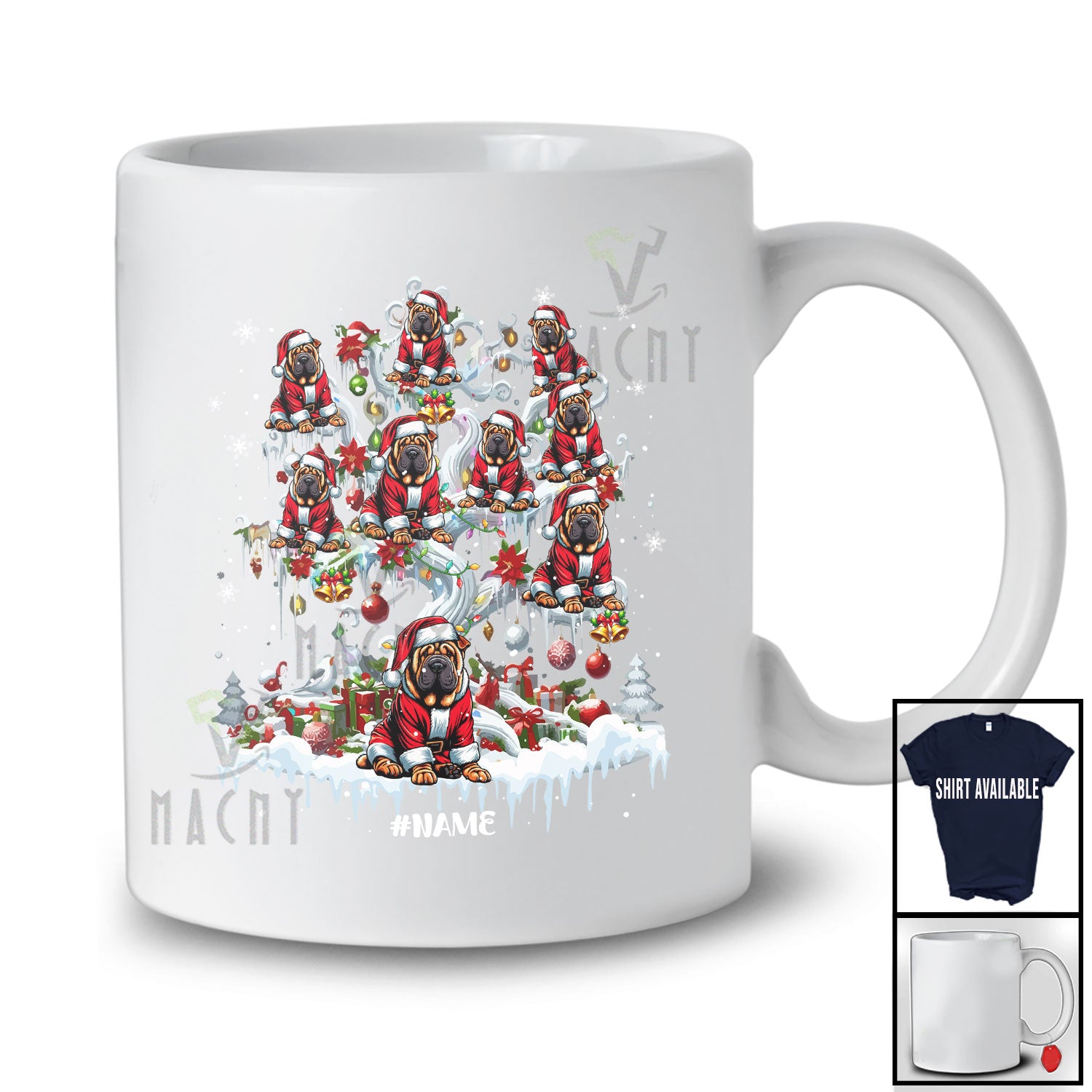 Personalized Custom Name Shar Pei Santa On Christmas Tree Snow; Lovely Winter Family T-Shirt