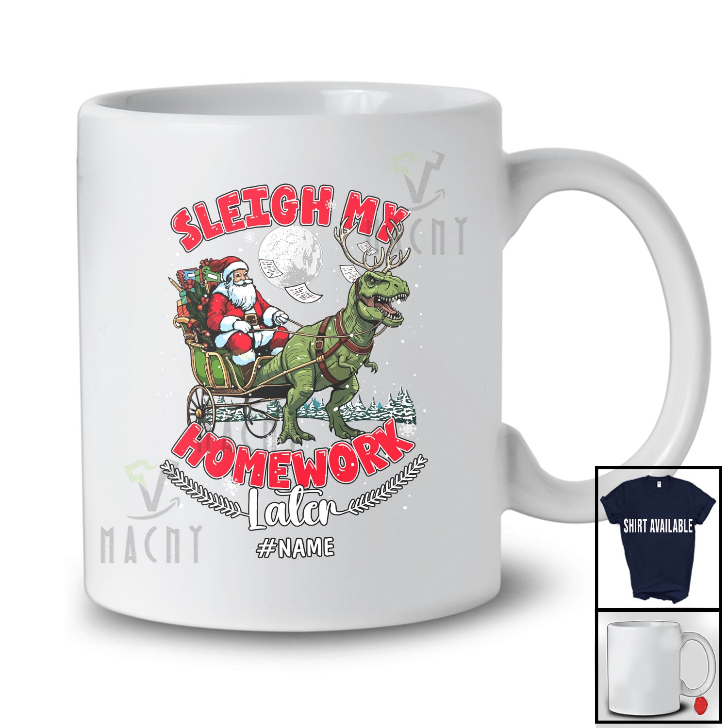 The Personalized Custom Name Sleigh My Homework Later; Joyful Christmas Lazy Santa Sleigh T-Rex T-Shirt is the product you didn't think you need, but once you have it, something you won't want to live without.