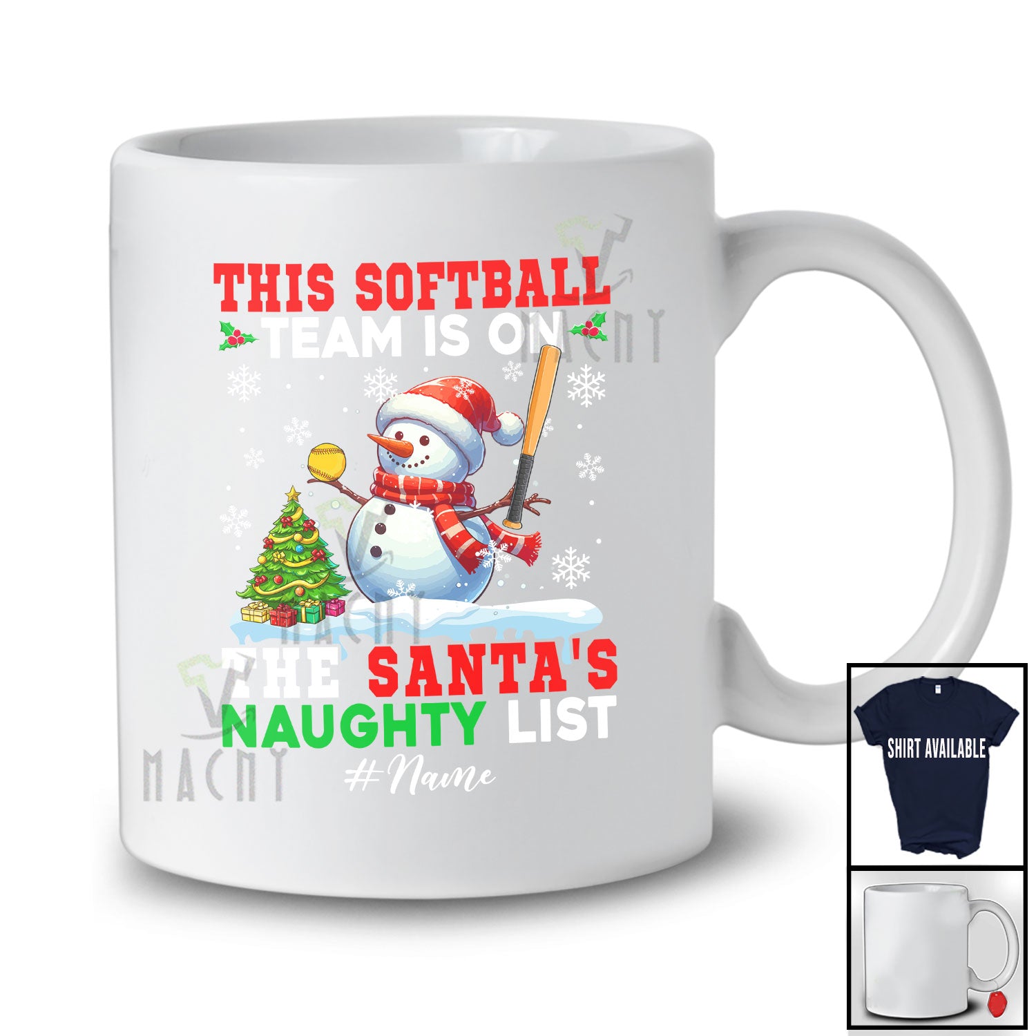 Personalized Custom Name Softball Team On Santa's Naughty List; Joyful Christmas Snowman Player T-Shirt