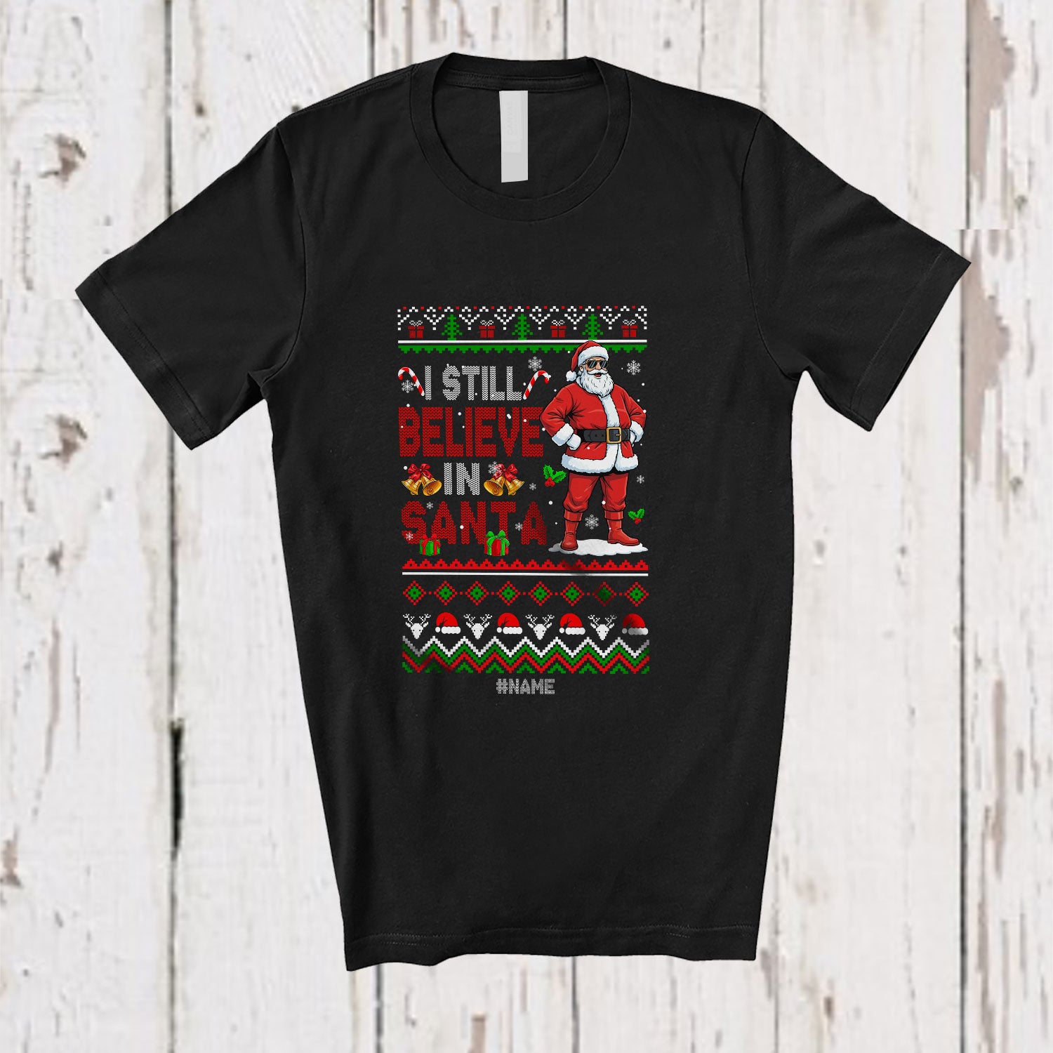 Personalized Custom Name Still Believe In Santa; Joyful Christmas Snow Sweater Santa; Family T-Shirt