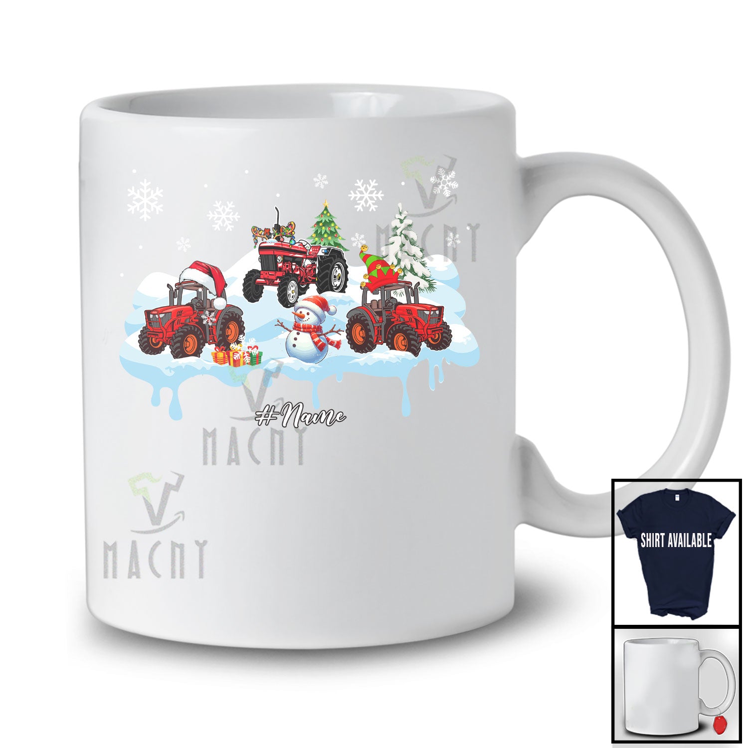 • Personalized Custom Name Three Santa Elf Tractor With Snowman; Joyful Christmas Snow Driver T-Shirt. This cotton t-shirt is a durable staple product with a classic fit. One of the most popular items, it has a relaxed style made for everyday and casual wear.