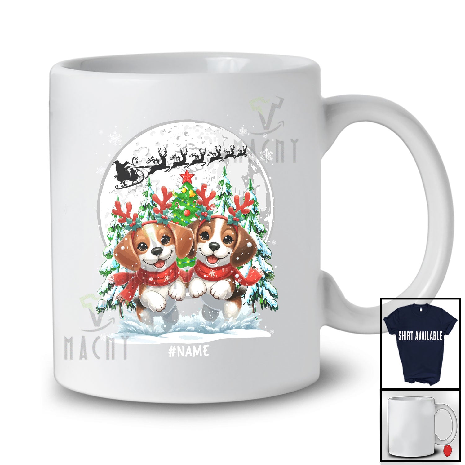 Life is too short to live without the Personalized Custom Name Two Beagles Reindeer Running; Lovely Christmas Moon Tree Family T-Shirt. Be happy. Be Content. Be Satisfied.