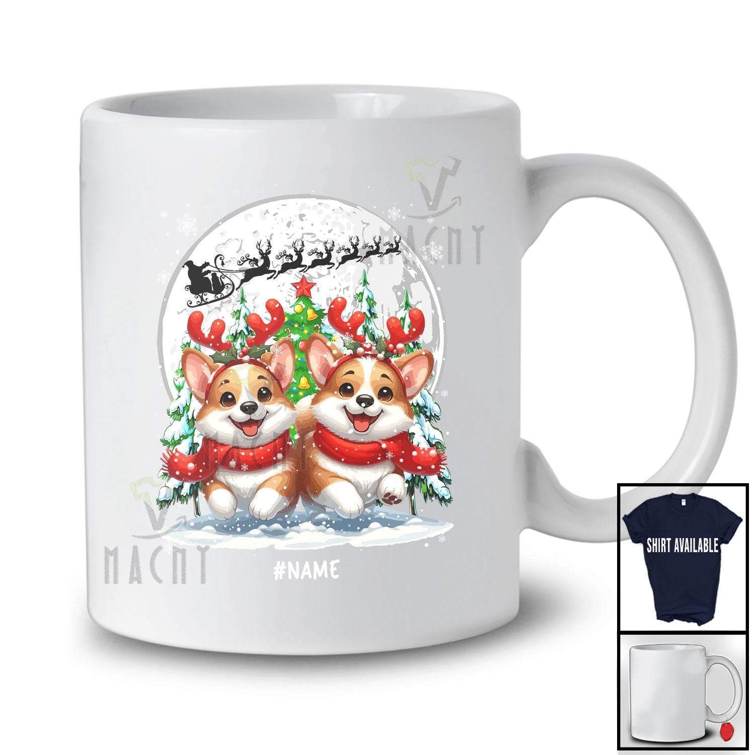new MacnyStore - Personalized Custom Name Two Corgis Reindeer Running; Lovely Christmas Moon Tree Family T-Shirt – Macnystore