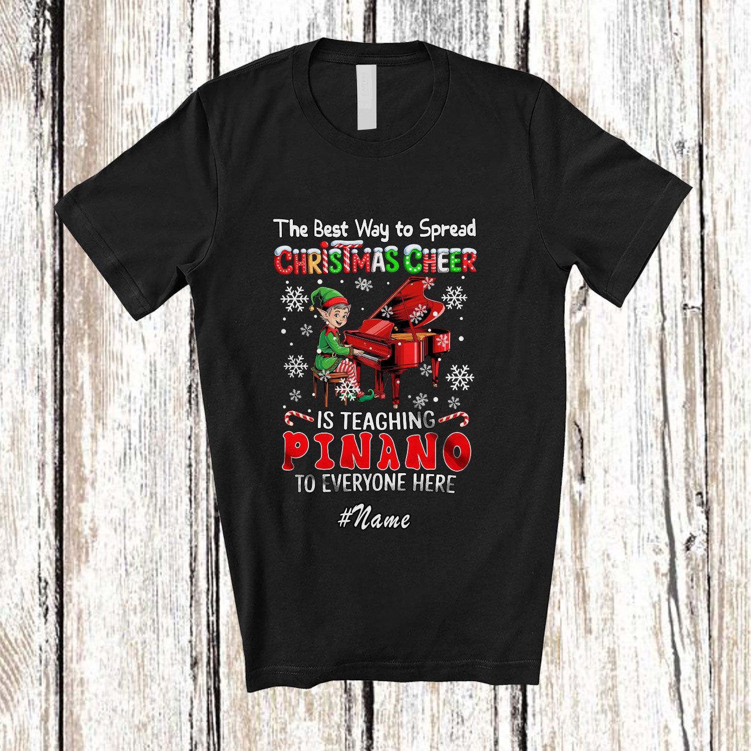Personalized Custom Name Way Spread Christmas Cheer Teaching Piano; Proud Teacher Elf T-Shirt