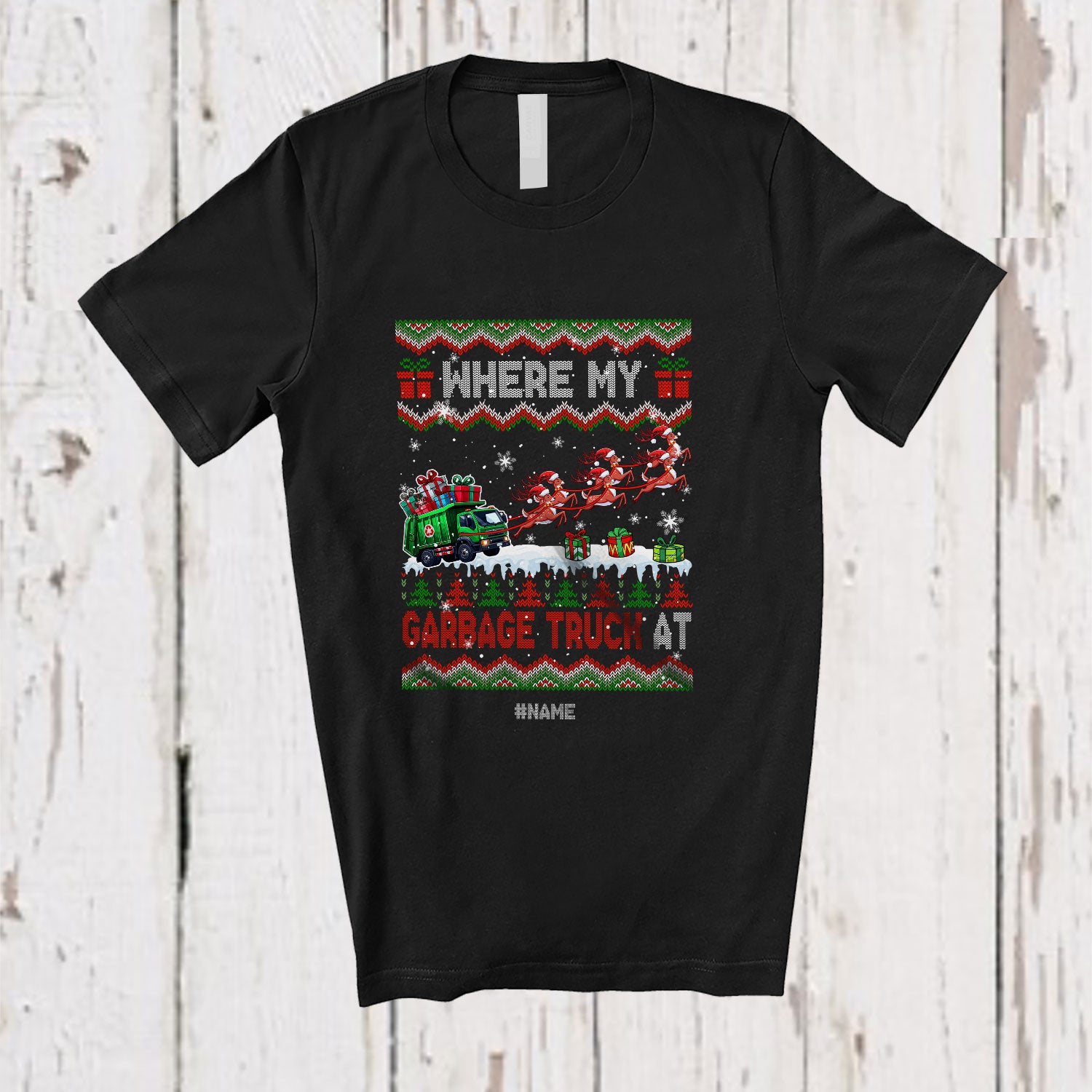 Personalized Custom Name Where My Garbage Truck At; Joyful Christmas Sweater Reindeer Driver T-Shirt