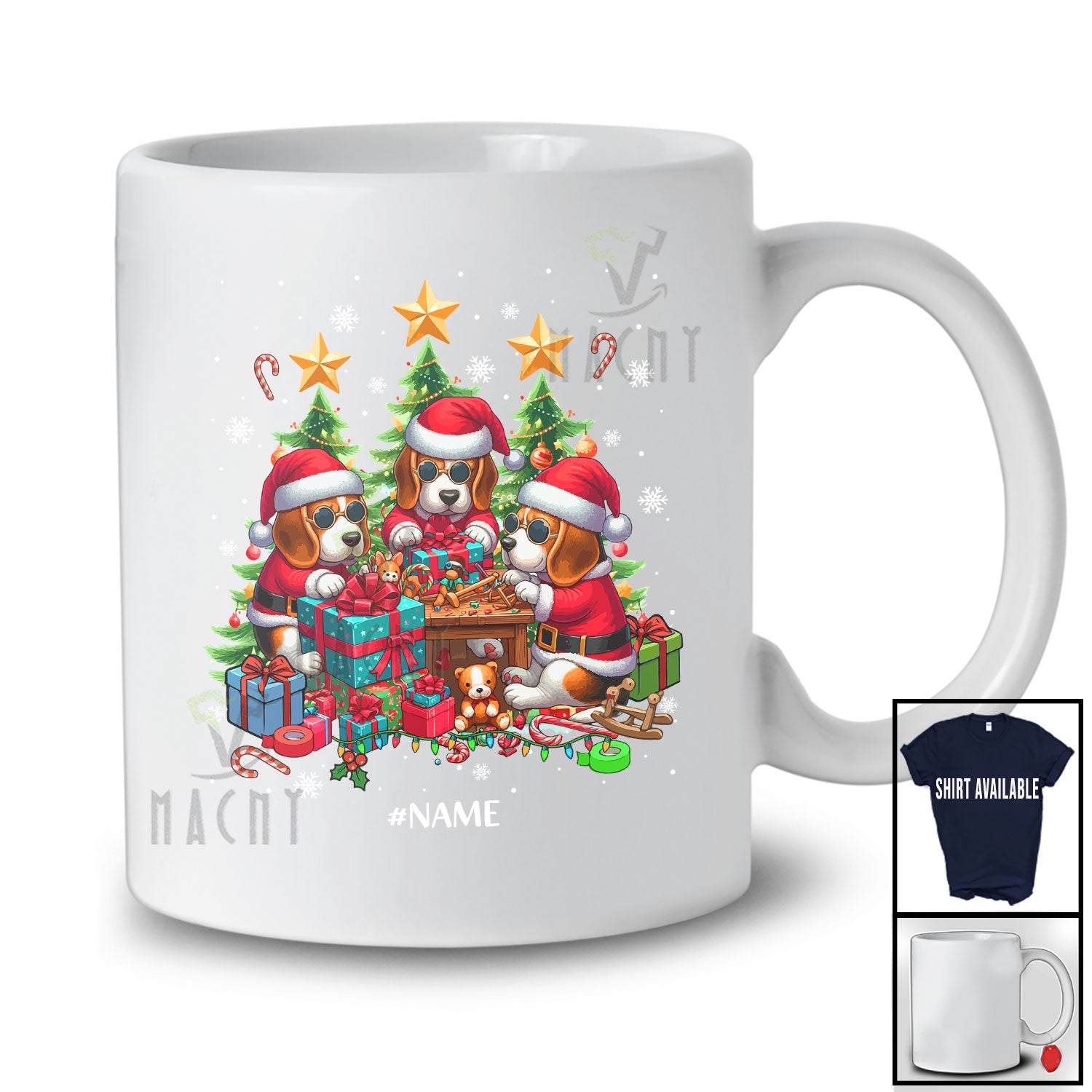 Personalized Custom Name Workshop With Santa Beagle Working; Joyful Christmas Family T-Shirt