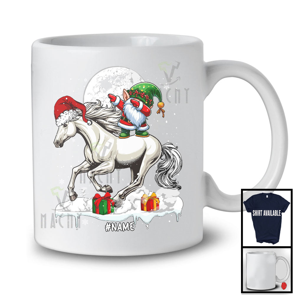 Personalized Dabbing Gnome Riding Horse; Cheerful Christmas Custom Name Santa Farm; Farmer T-Shirt