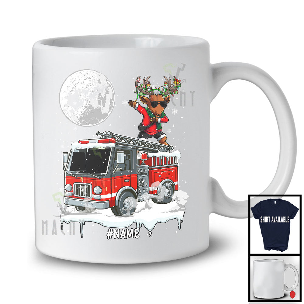 Personalized Dabbing Reindeer On Fire Truck; Joyful Christmas Custom Name; Fire Truck Driver T-Shirt