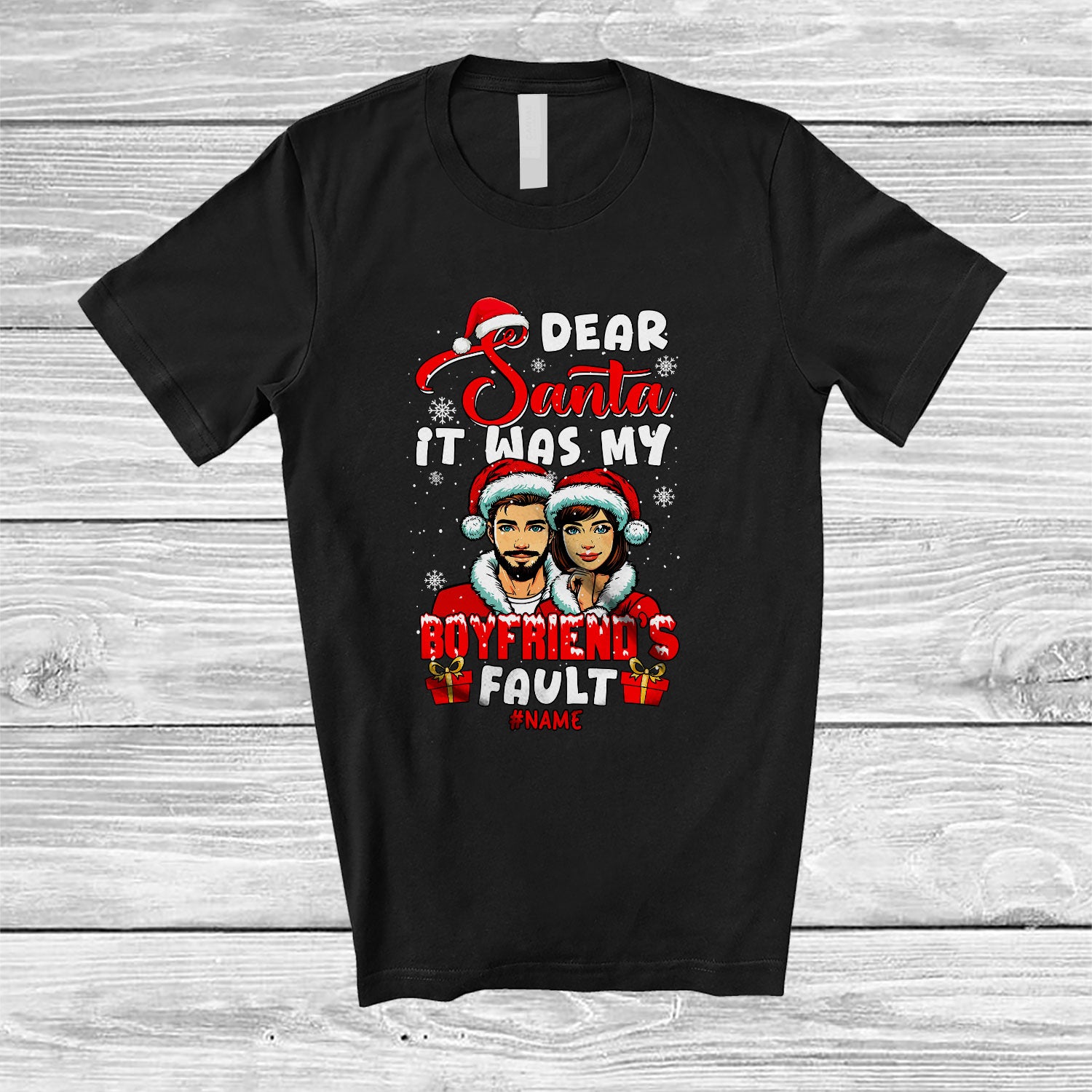 The Personalized Dear Santa It Was My Boyfriend's Fault; Fantastic Christmas Santa Custom Name Couple T-Shirt is evocative, to say the least, but that's why you're drawn to it in the first place.