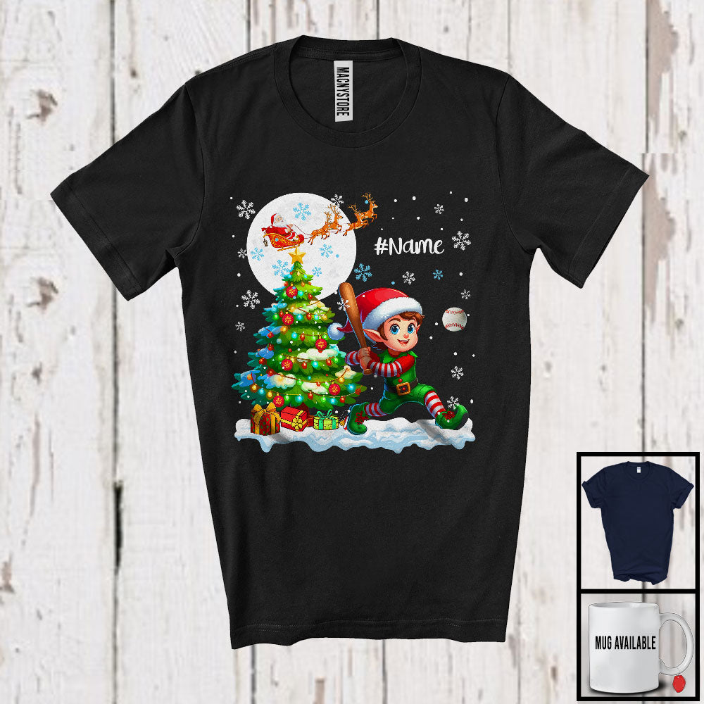 Personalized Elf Playing Baseball Team; Awesome Christmas Custom Name Sport Player T-Shirt