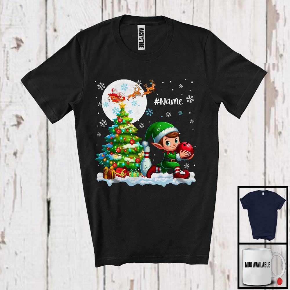 Personalized Elf Playing Bowling Team; Awesome Christmas Custom Name Sport Player T-Shirt