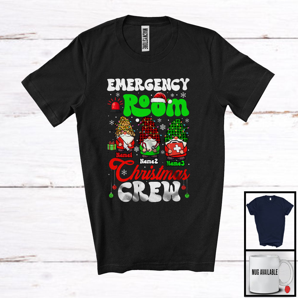 Personalized Emergency Room Christmas Crew; Lovely Custom Name Three Gnomes; Nurse T-Shirt
