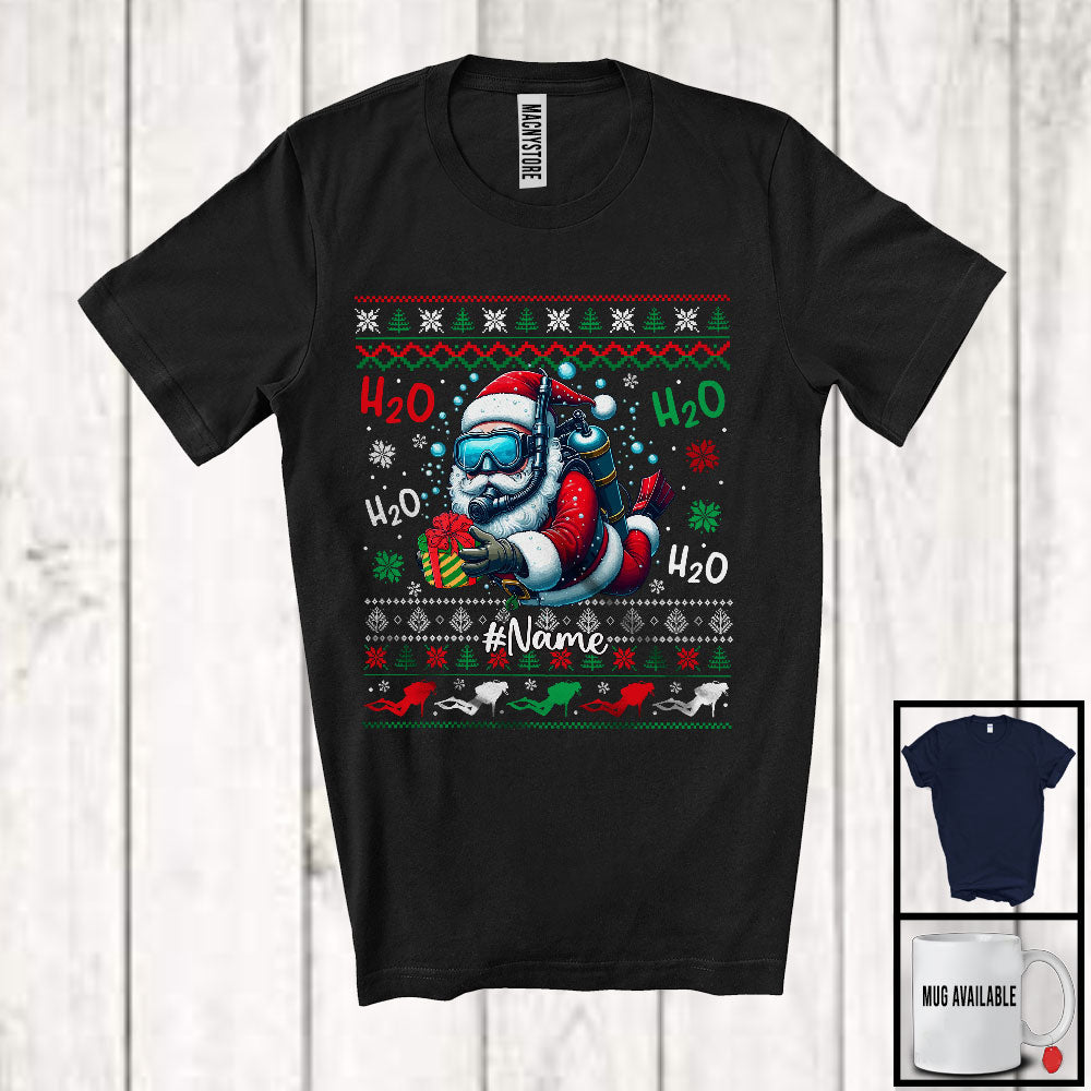 Personalized H2O Scuba Diving Santa; Awesome Christmas Sweater Custom Name Scuba Diver T-Shirt