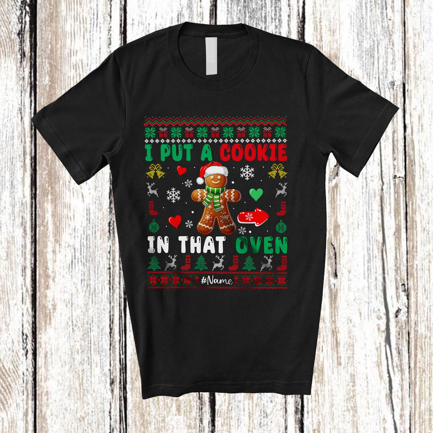 Personalized I Put A Cookie; Amusing Christmas Pregnancy Sweater; Custom Name Gingerbread T-Shirt. This cotton t-shirt is a durable staple product with a classic fit. One of the most popular items, it has a relaxed style made for everyday and casual wear.