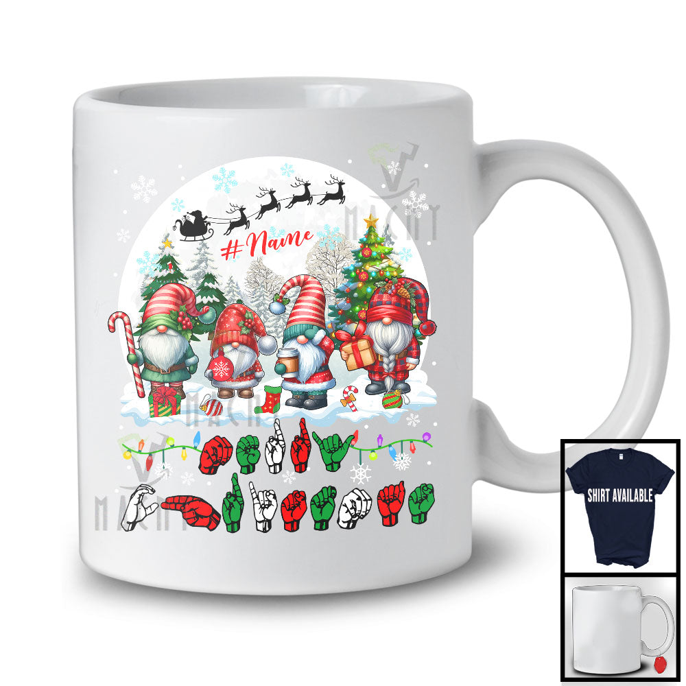 Personalized Merry Christmas; Lovely Custom Name Gnomes; ASL Sign Language Moon T-Shirt