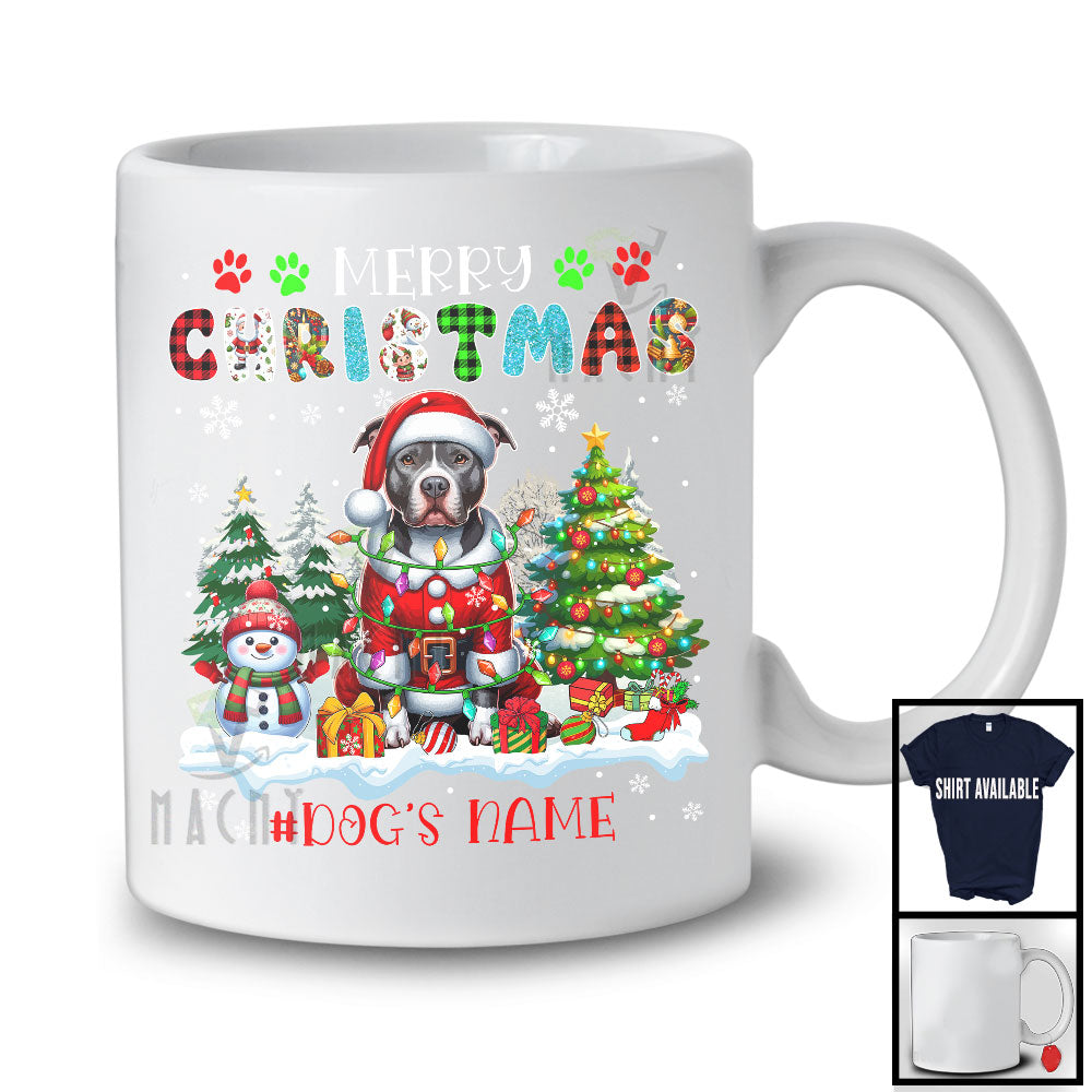 Personalized Merry Christmas; Lovely Custom Name Santa Pit Bull Owner; Plaid X-mas T-Shirt