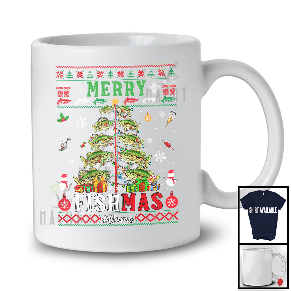 new MacnyStore - Personalized Merry Fishmas; Amazing Christmas Lights Tree Bass Fish; Custom Name Fishing T-Shirt – Macnystore