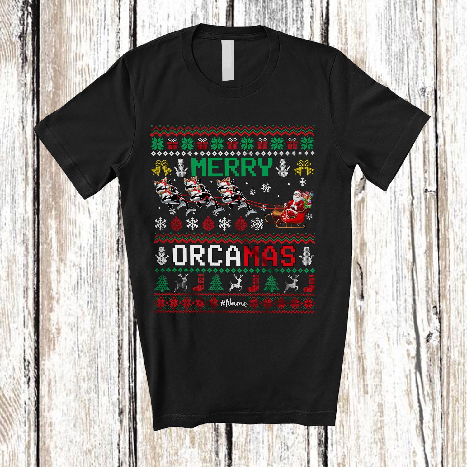 Personalized Merry Orcamas; Amusing Christmas Sweater Orca Killer Whale Santa Sleigh T-Shirt