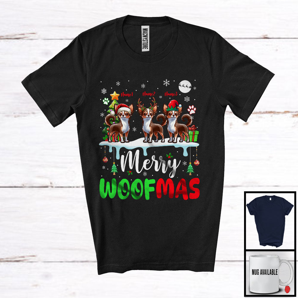 Personalized Merry Woofmas; Awesome Christmas Custom Name Three Chihuahua Owner; Snow T-Shirt