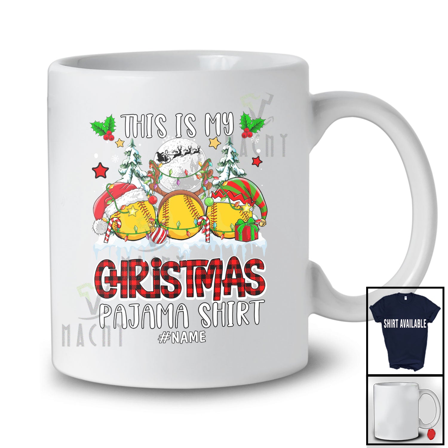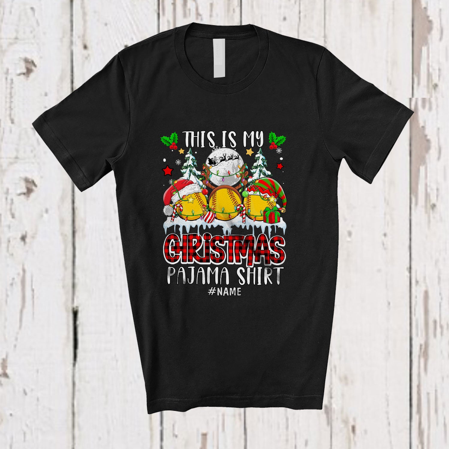 Personalized My Christmas Pajama Shirt; Joyful Red Plaid Custom Name Softball Sport Player T-Shirt