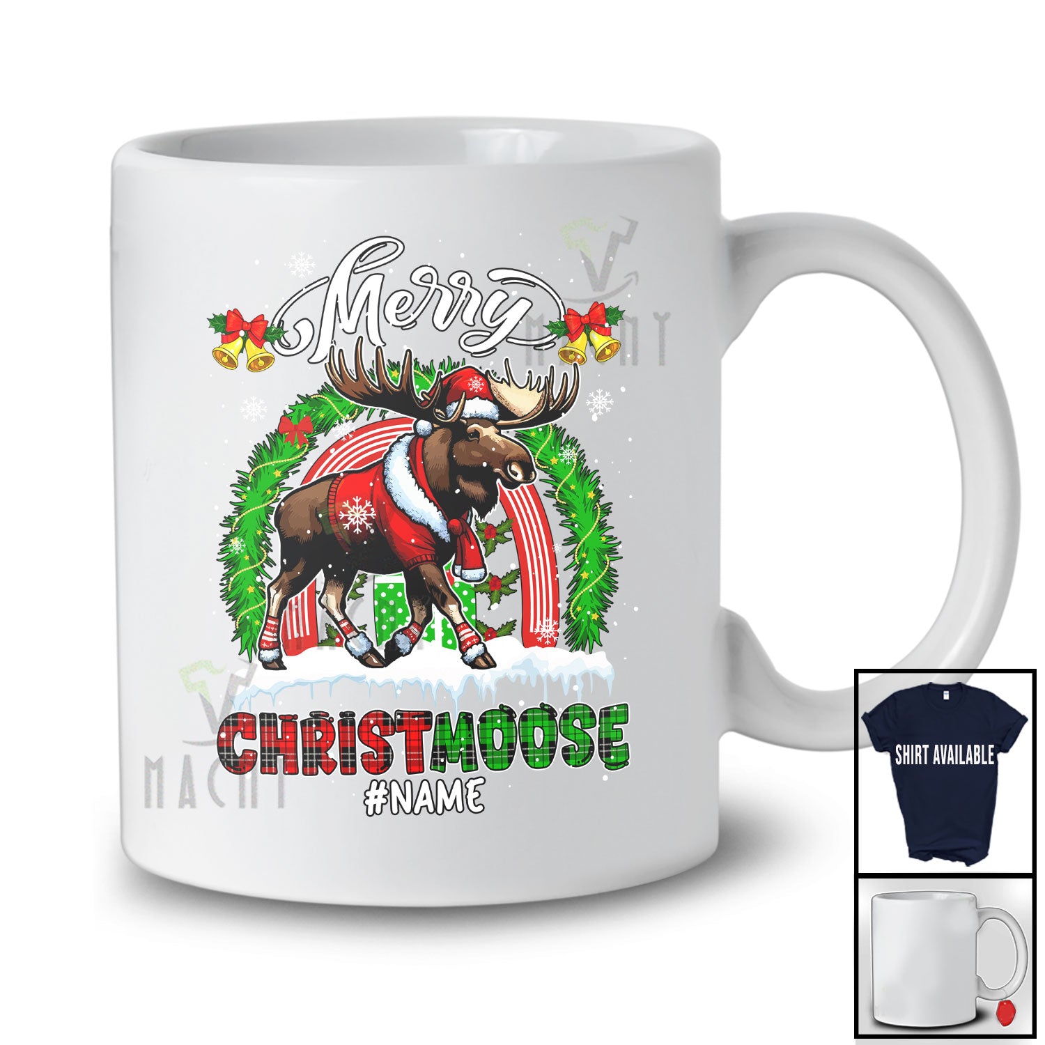 The Personalized Rainbow Merry Christmoose; Merry Christmas Lights Santa Moose Red Green T-Shirt is far and away, one of our most popular items. People can't seem to get enough of it.