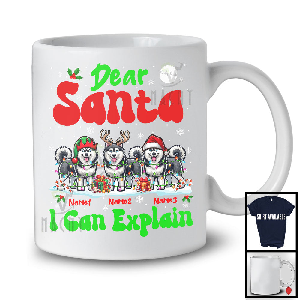 Personalized Santa I Can Explain; Cheerful Christmas Lights Custom Name Three Husky; Snowing T-Shirt