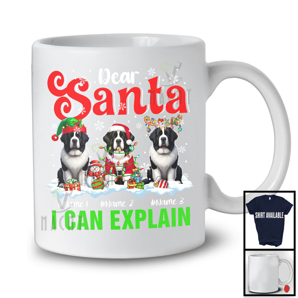 This Personalized Santa I Can Explain; Merry Christmas Custom Name Three Landseers; Snowing T-Shirt is great idea gift for your family, friends in this birthday, christmas, mother's day, father's day, patrick's day or any holiday.