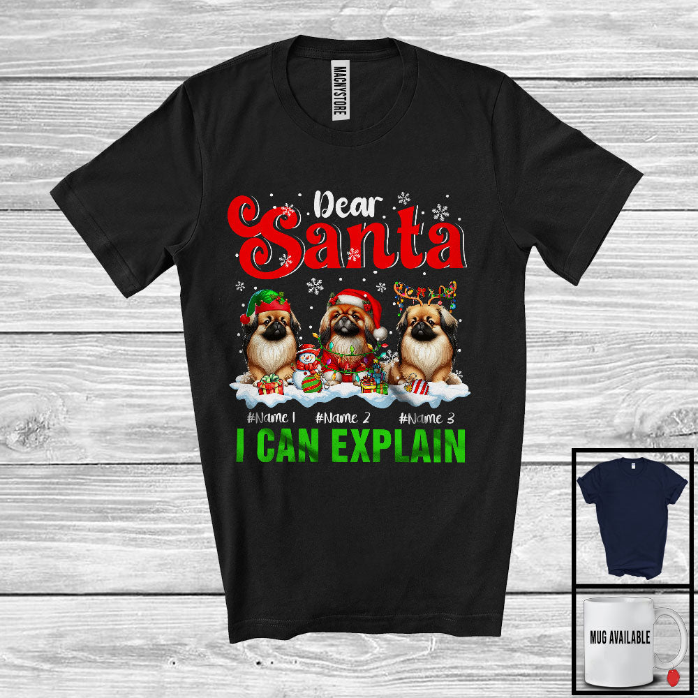 Personalized Santa I Can Explain; Merry Christmas Custom Name Three Pekingeses; Snowing T-Shirt