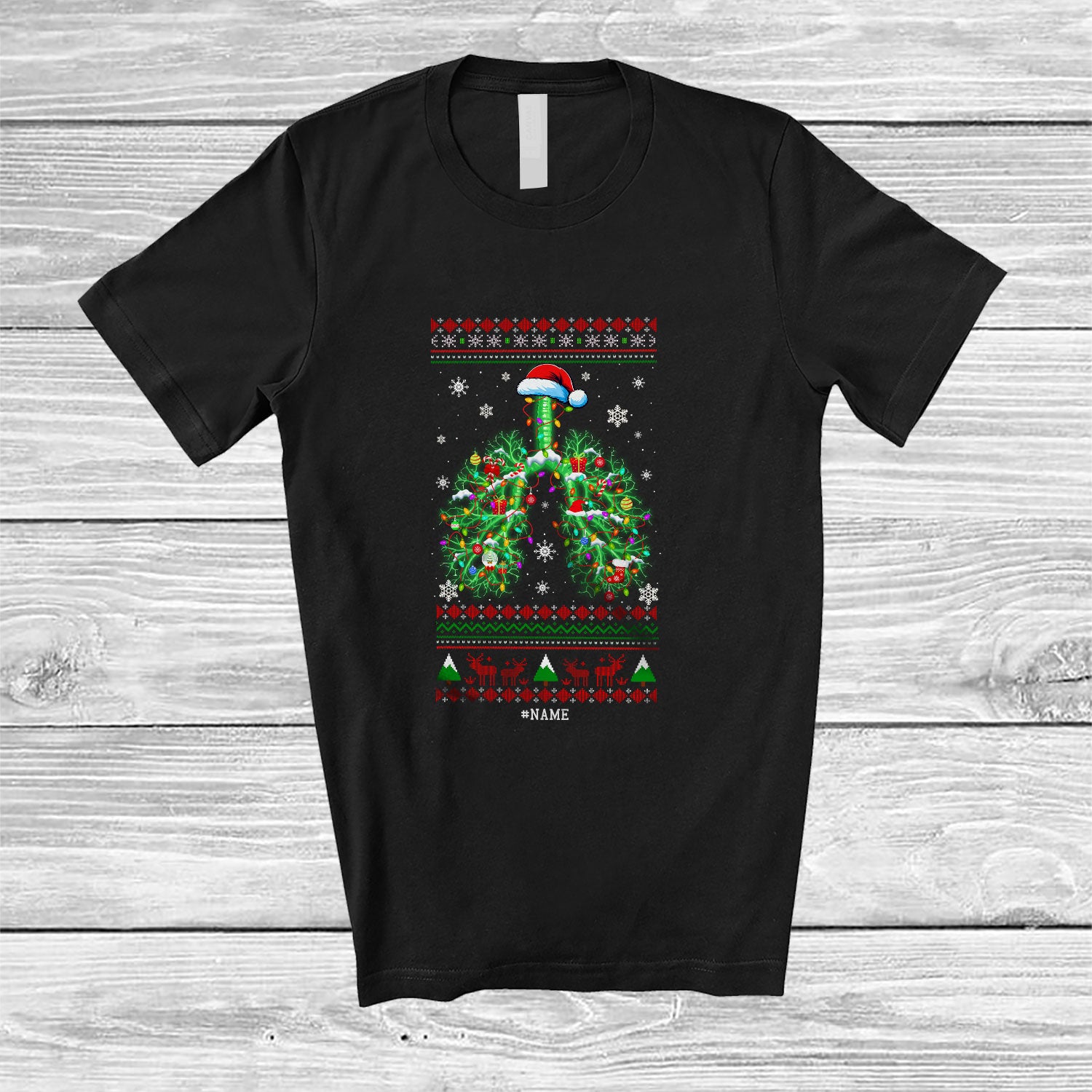 • Personalized Santa Lungs; Amazing Christmas Sweater Custom Name Respiratory Therapy T-Shirt. This cotton t-shirt is a durable staple product with a classic fit. One of the most popular items, it has a relaxed style made for everyday and casual wear.