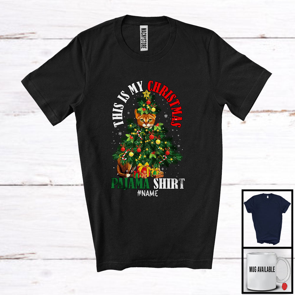 • Personalized This Is My Christmas Pajama Shirt; Humorous Abyssinian Cat X-mas Cosplay T-Shirt. This cotton t-shirt is a durable staple product with a classic fit. One of the most popular items, it has a relaxed style made for everyday and casual wear.
