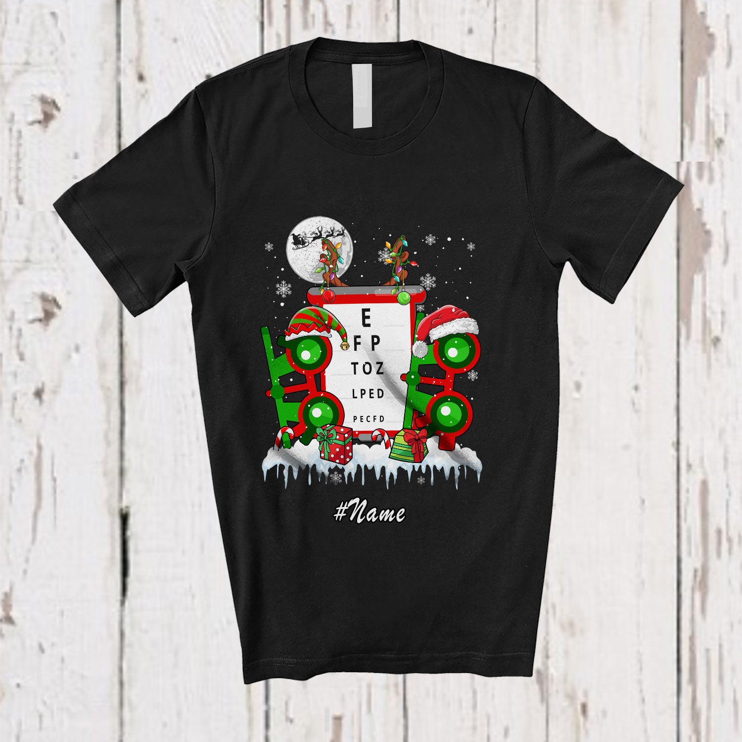 Personalized Three Reindeer Elf Santa Optician; Proud Custom Name Christmas Jobs T-Shirt