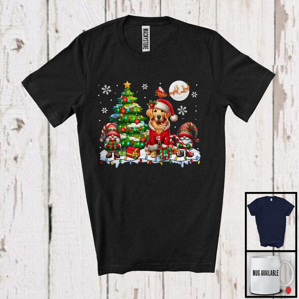 new MacnyStore - Santa Golden Retriever With Gnome X-mas Tree, Merry Christmas Lights, Snowing Family Group T-Shirt – Macnystore