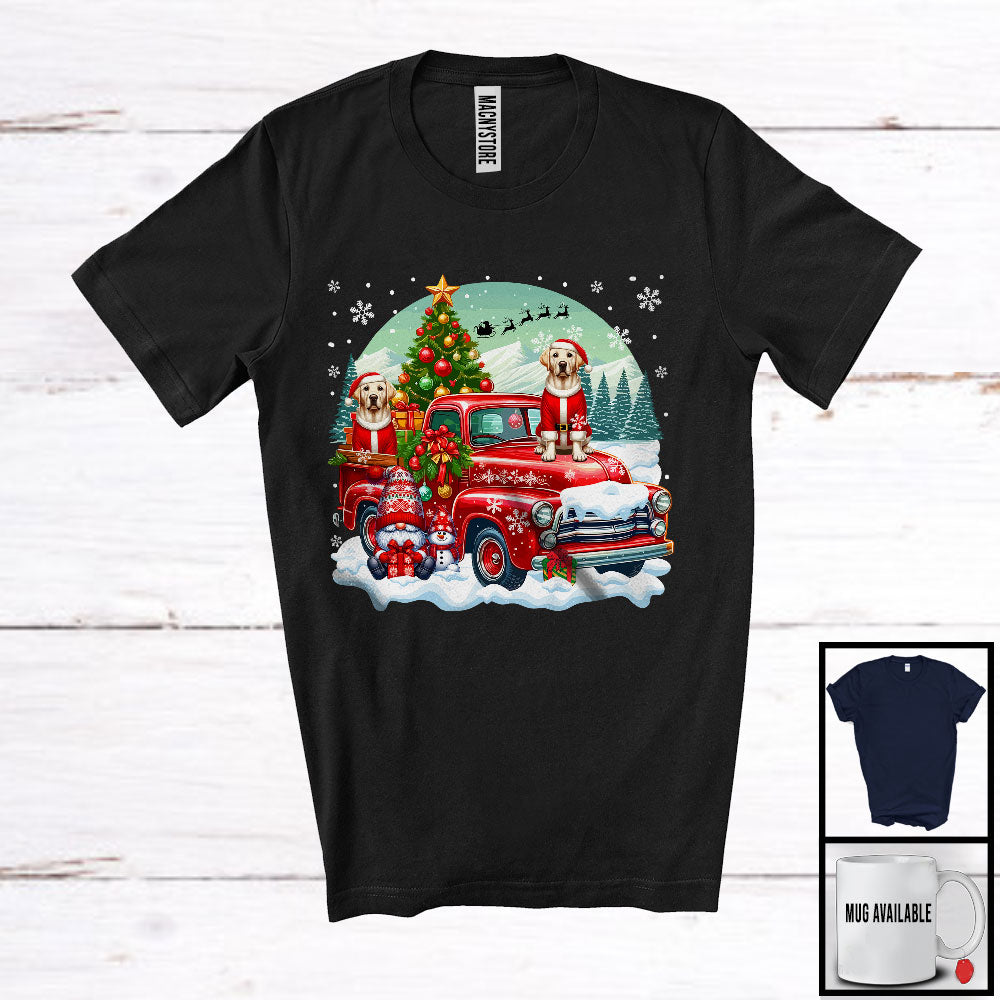 Santa Labrador Retriever On Pickup Truck; Joyful Christmas Moon Gnome; Winter Snowing T-Shirt