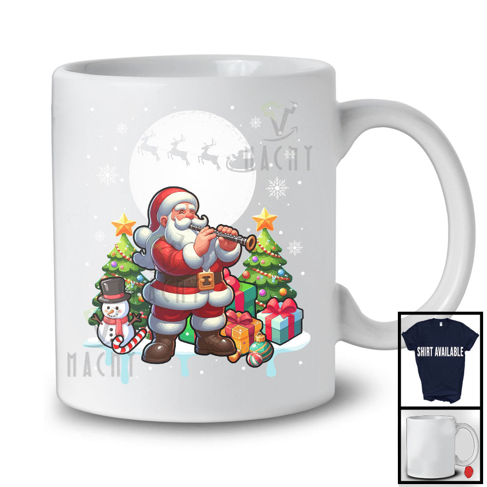 Santa Playing Flute; Awesome Christmas Tree Santa Lover; Musical Instruments Player T-Shirt