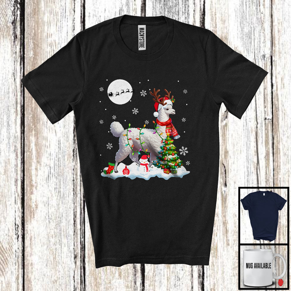 Santa Reindeer Llama; Wonderful Christmas Lights Tree Llama; Snowing Animal Lover T-Shirt