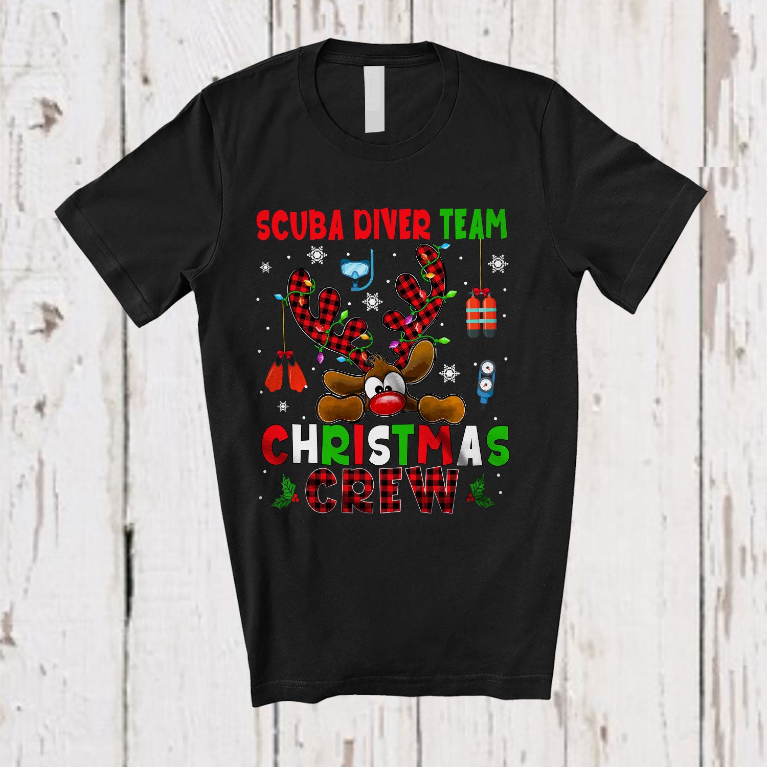 • Scuba Diver Team Christmas Crew; Fantastic X-mas Red Plaid Reindeer Face; Proud Careers Jobs T-Shirt. This cotton t-shirt is a durable staple product with a classic fit. One of the most popular items, it has a relaxed style made for everyday and casual wear.