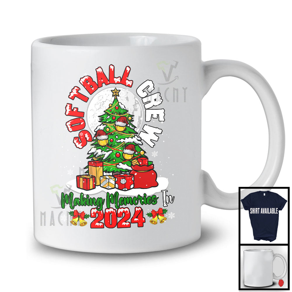 Softball Crew Making Memories In 2024; Joyful Christmas Tree Moon; Sport Player Group T-Shirt