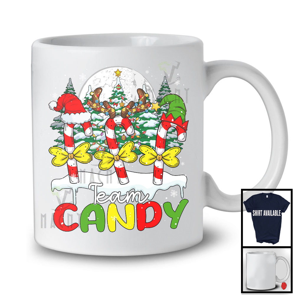 Team Candy, Lovely Christmas Three Santa ELF Reindeer Candy, Matching X-mas Food Lover T-Shirt. This cotton t-shirt is a durable staple product with a classic fit. One of the most popular items, it has a relaxed style made for everyday and casual wear.