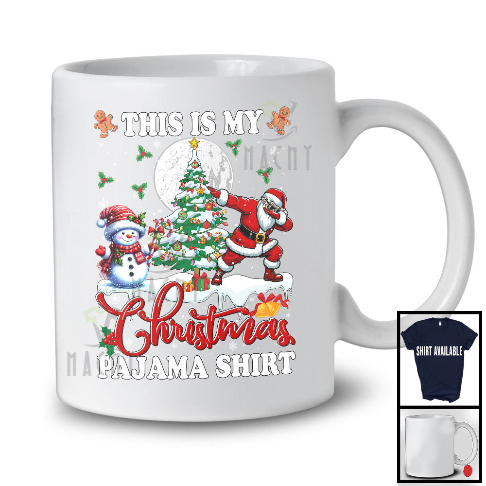 This Is My Christmas Pajama Shirt; Joyful X-mas Lights Tree Dabbing Santa Snowman; Family T-Shirt. This cotton t-shirt is a durable staple product with a classic fit. One of the most popular items, it has a relaxed style made for everyday and casual wear.