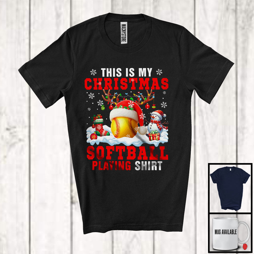 This This Is My Christmas Softball Playing Shirt; Adorable X mas Santa Reindeer Sport Team Player T-Shirt is great idea gift for your family, friends in this birthday, christmas, mother's day, father's day, patrick's day or any holiday.